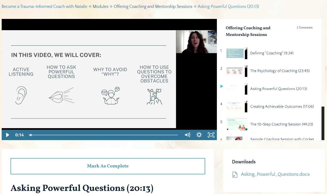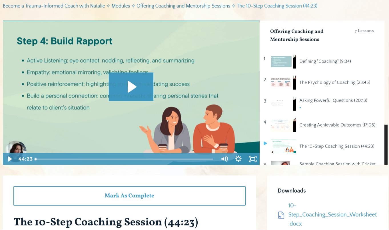 Here is a small sample of what you can expect inside The Become a Trauma- Informed Coach Course
